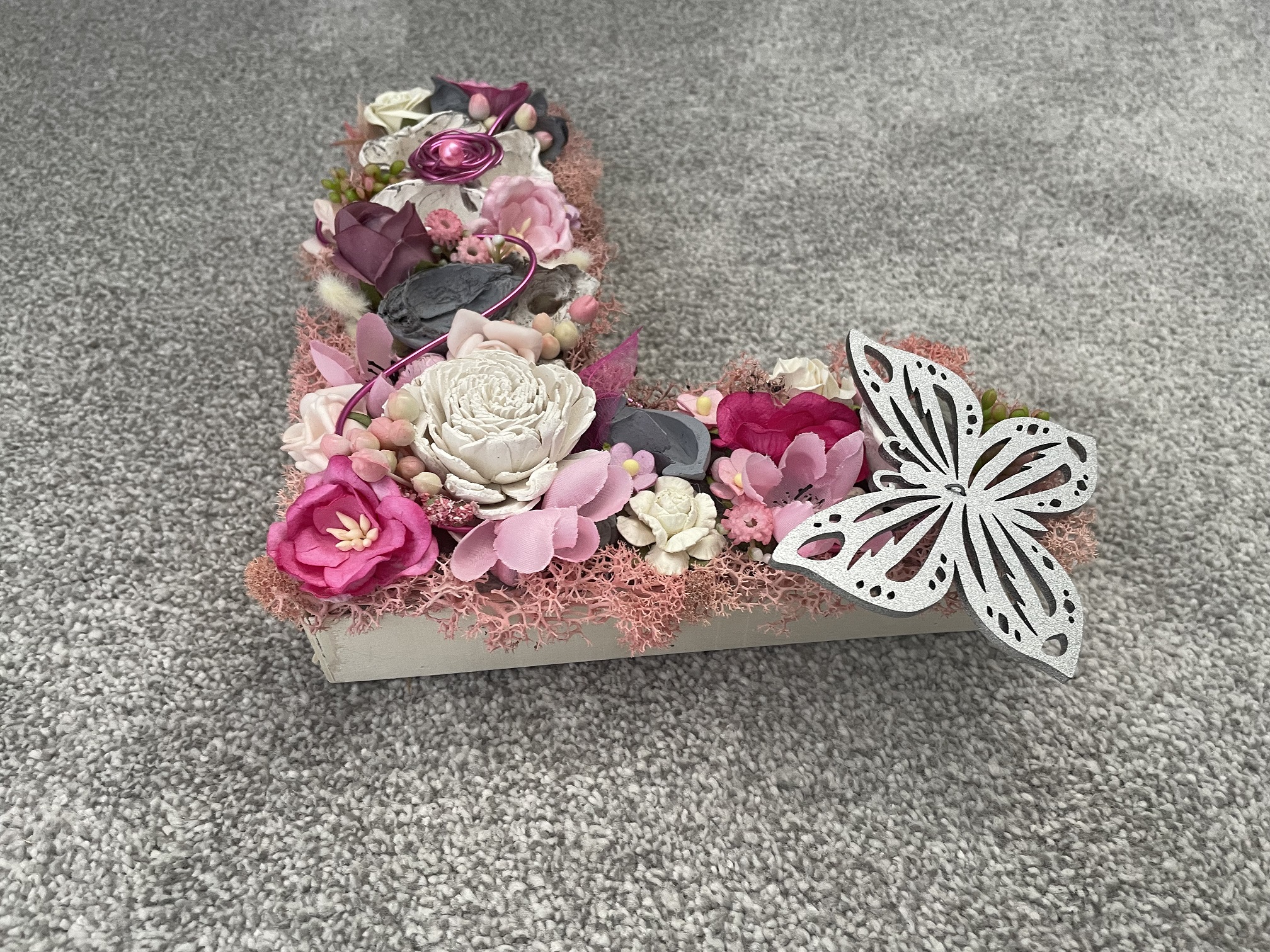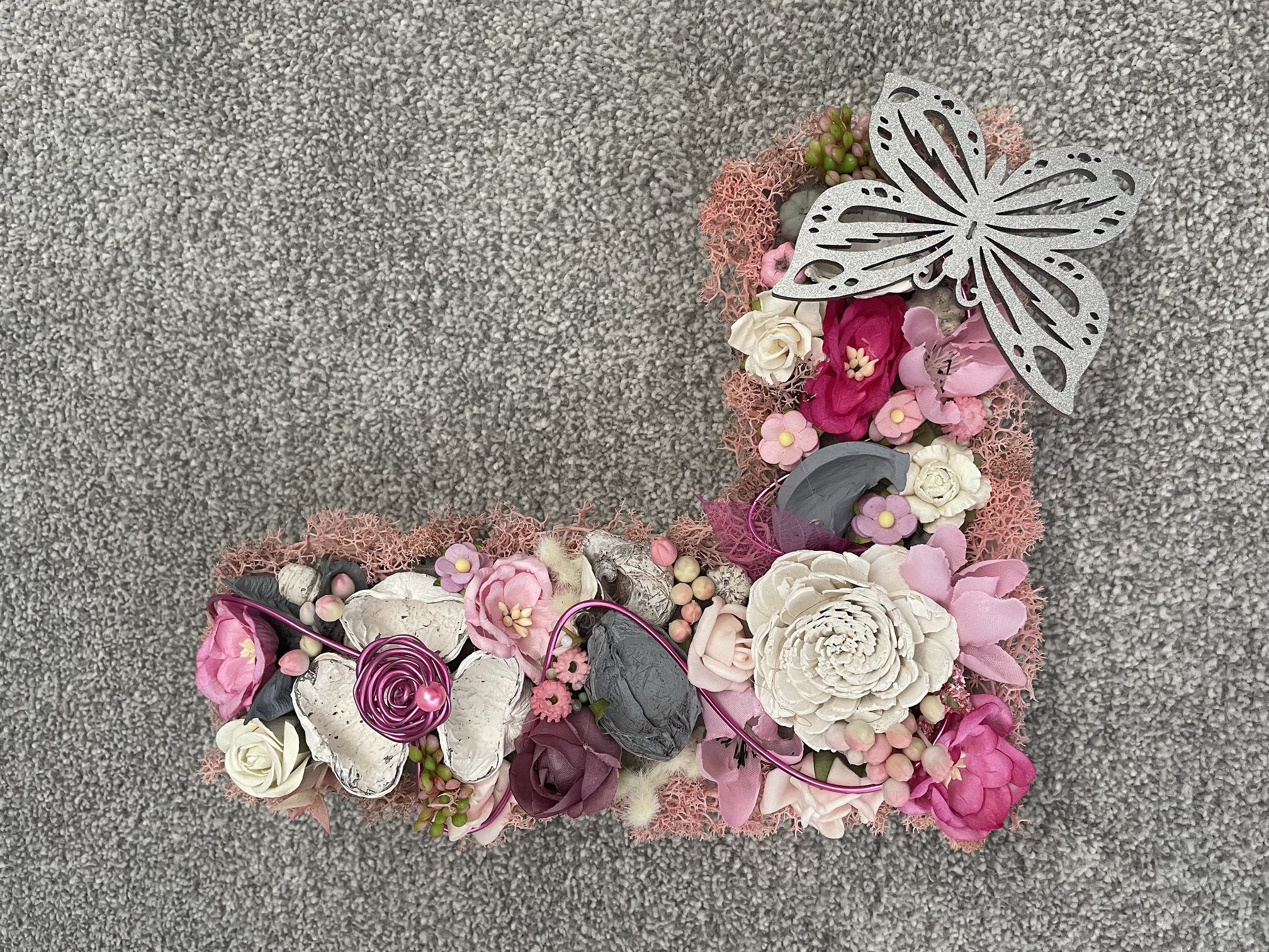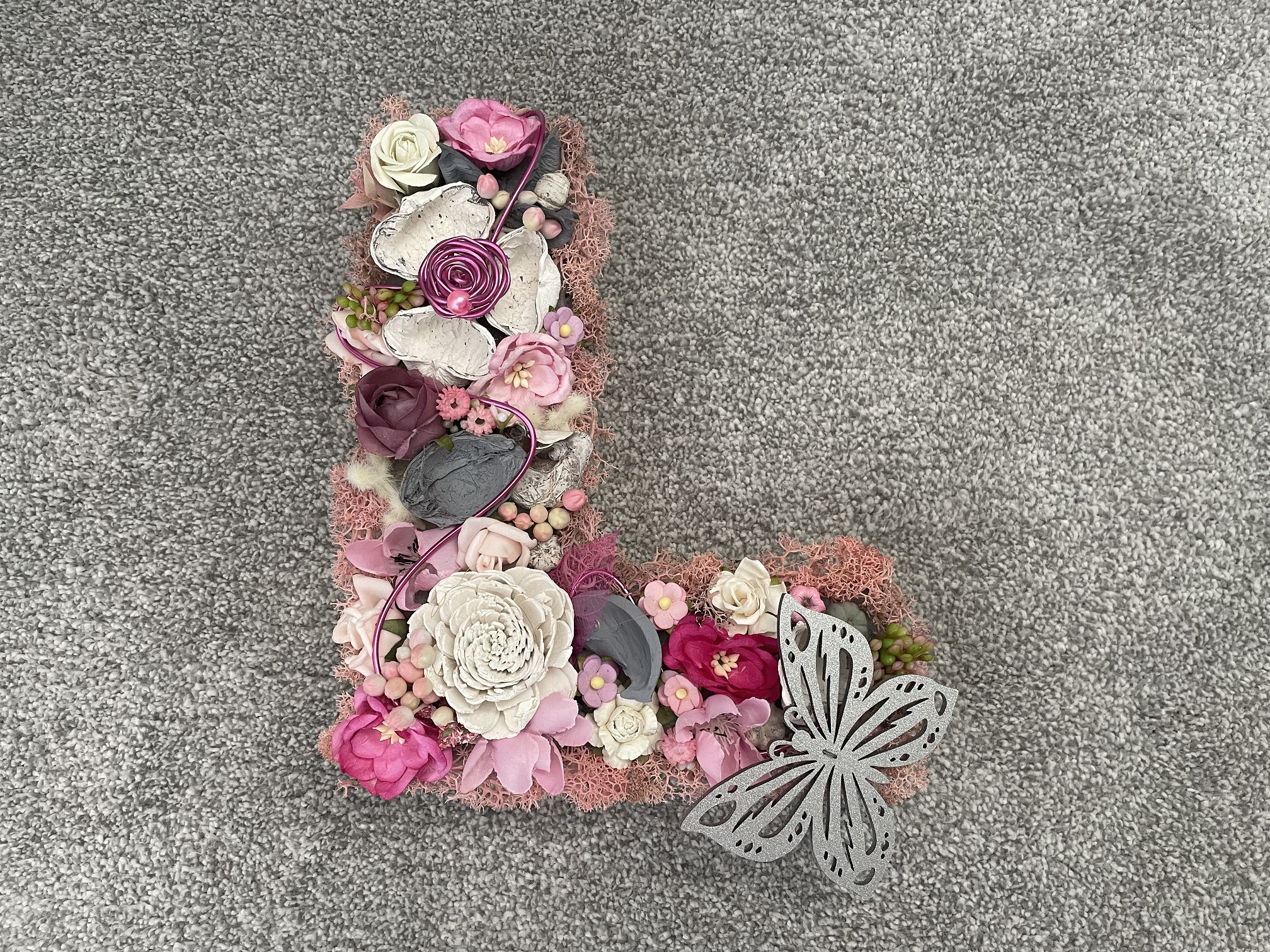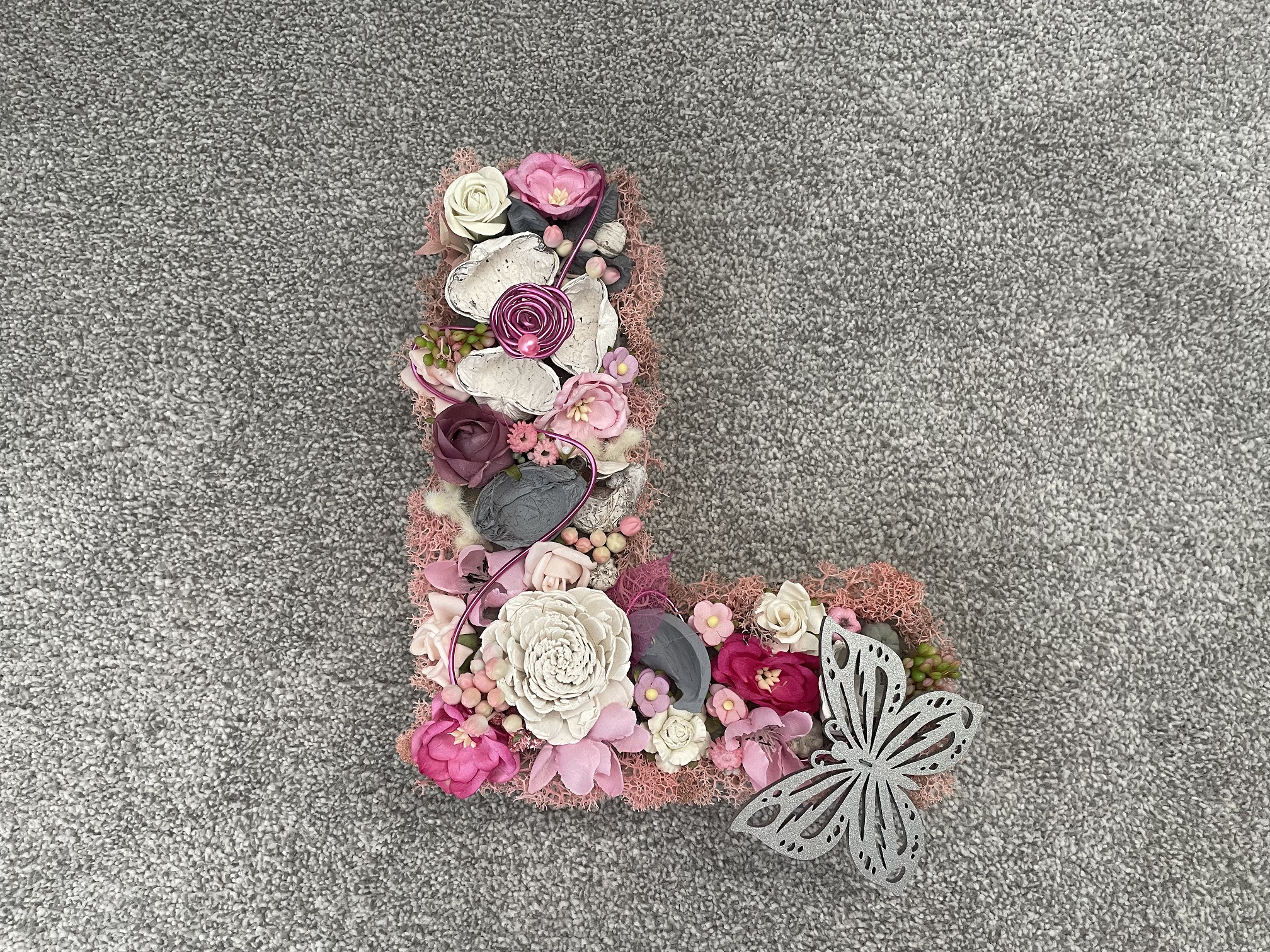 We have one 'L' letter in stock (the one with butterfly on) Contact me if you require other letter(s).