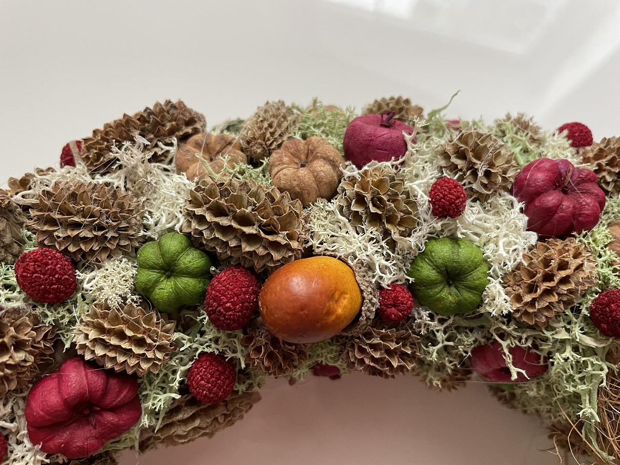 Made from natural pods and decorated with artificial flowers and more colours of Natural Norwegian Reindeer Moss.