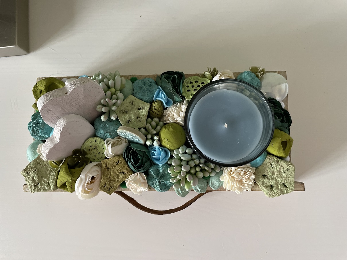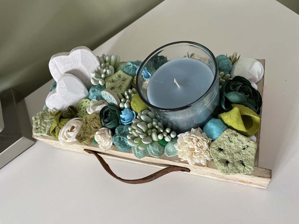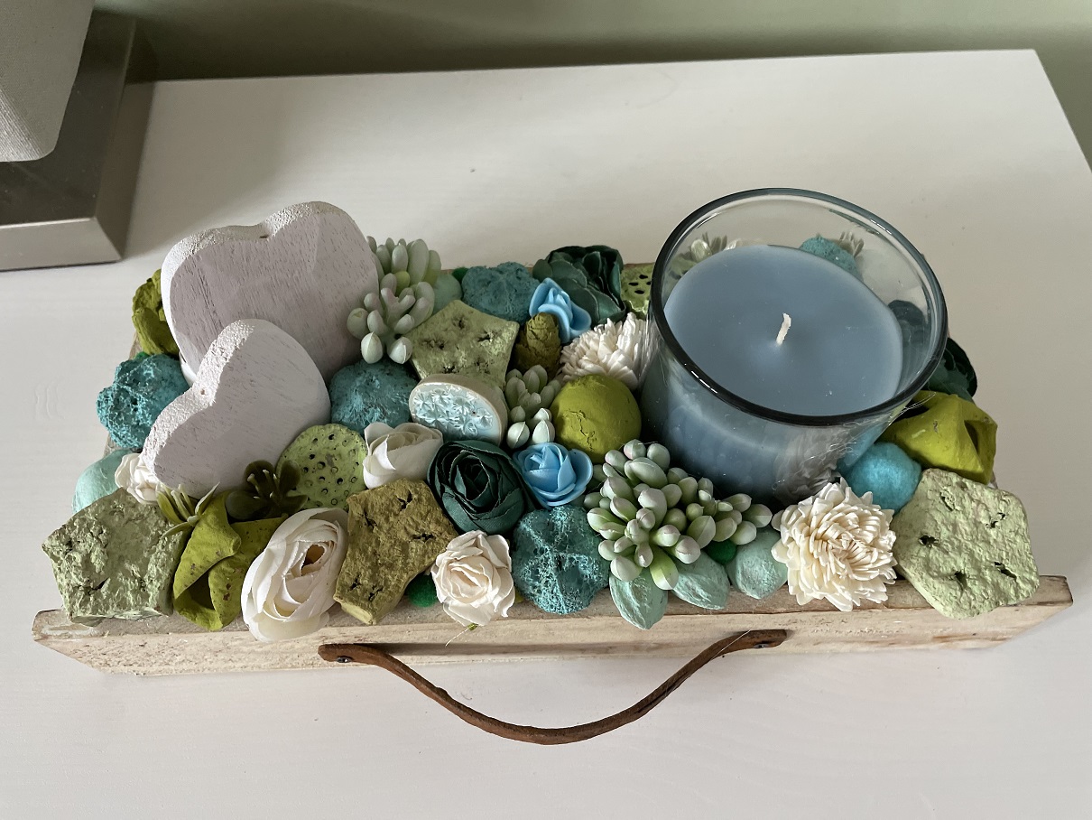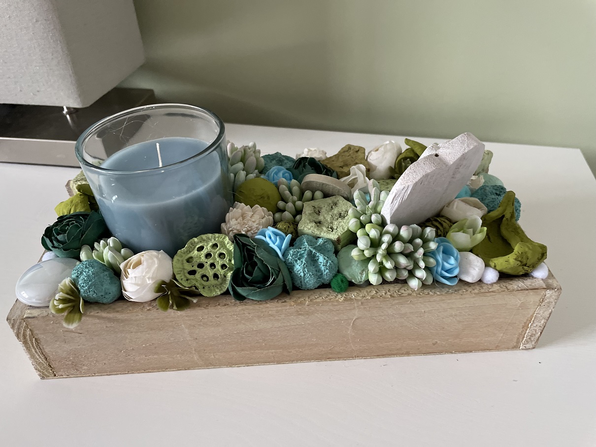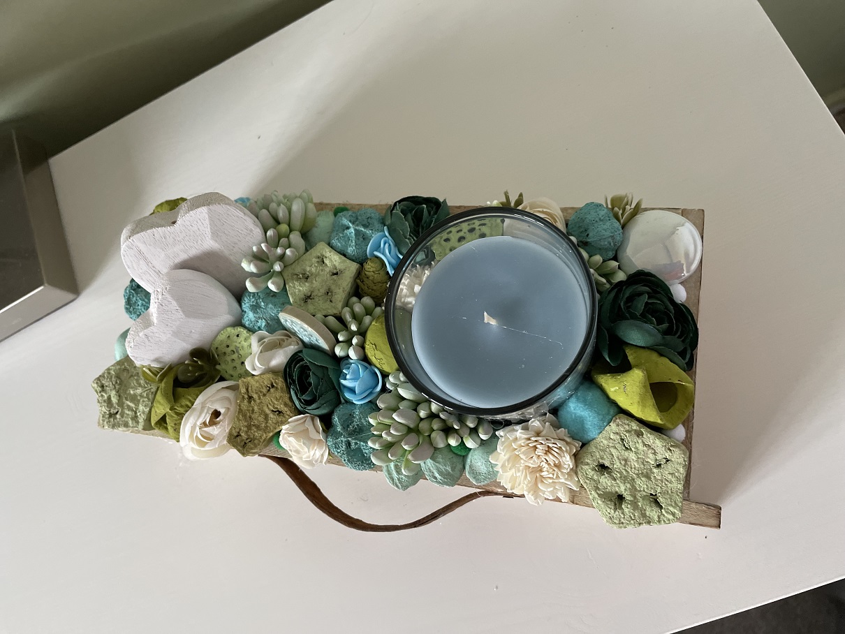 Table decor, Centerpiece with Candle - blue/green/white - Wedding Style