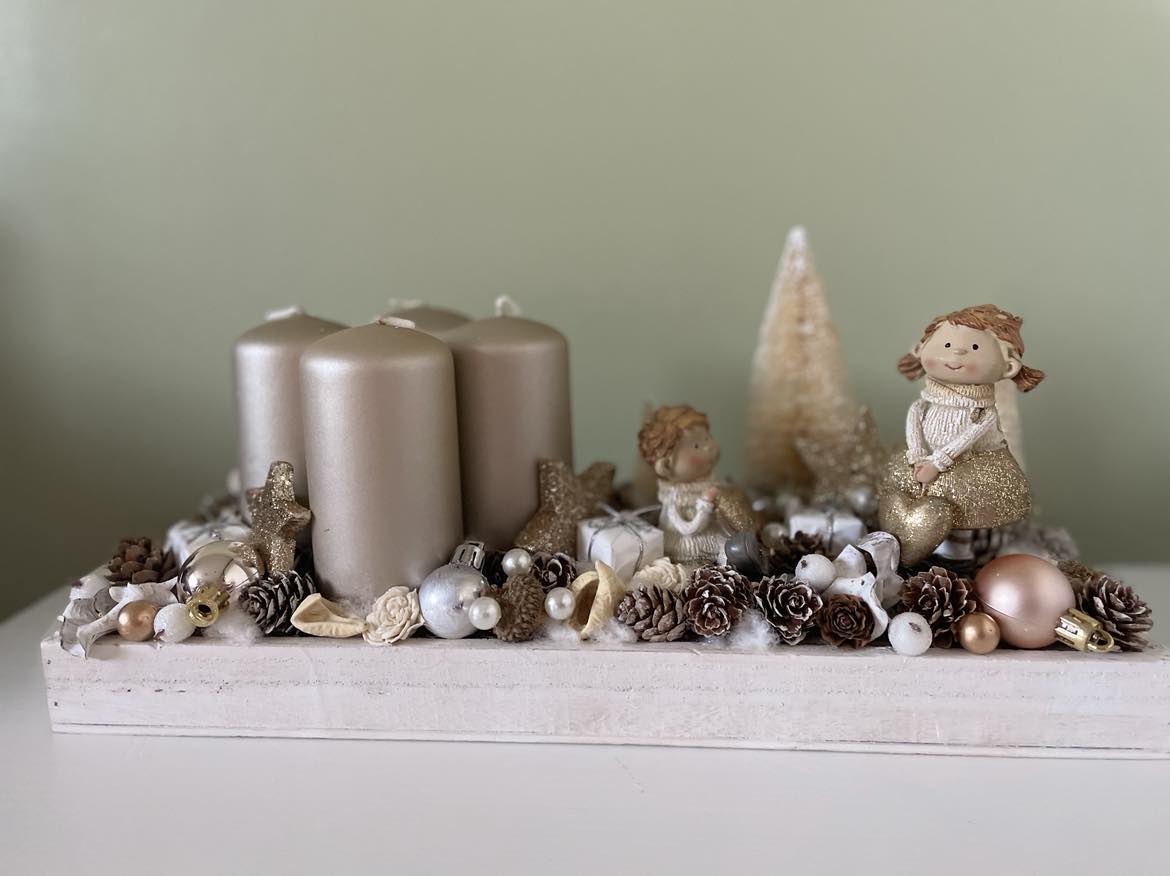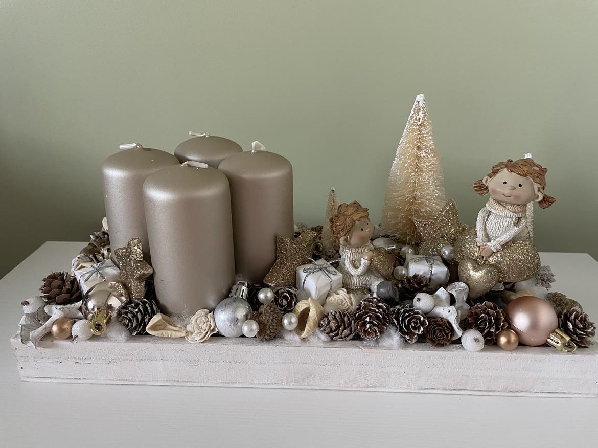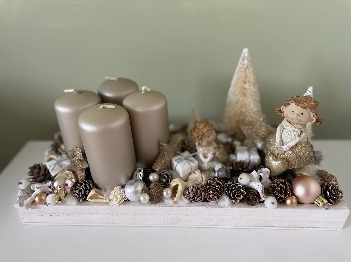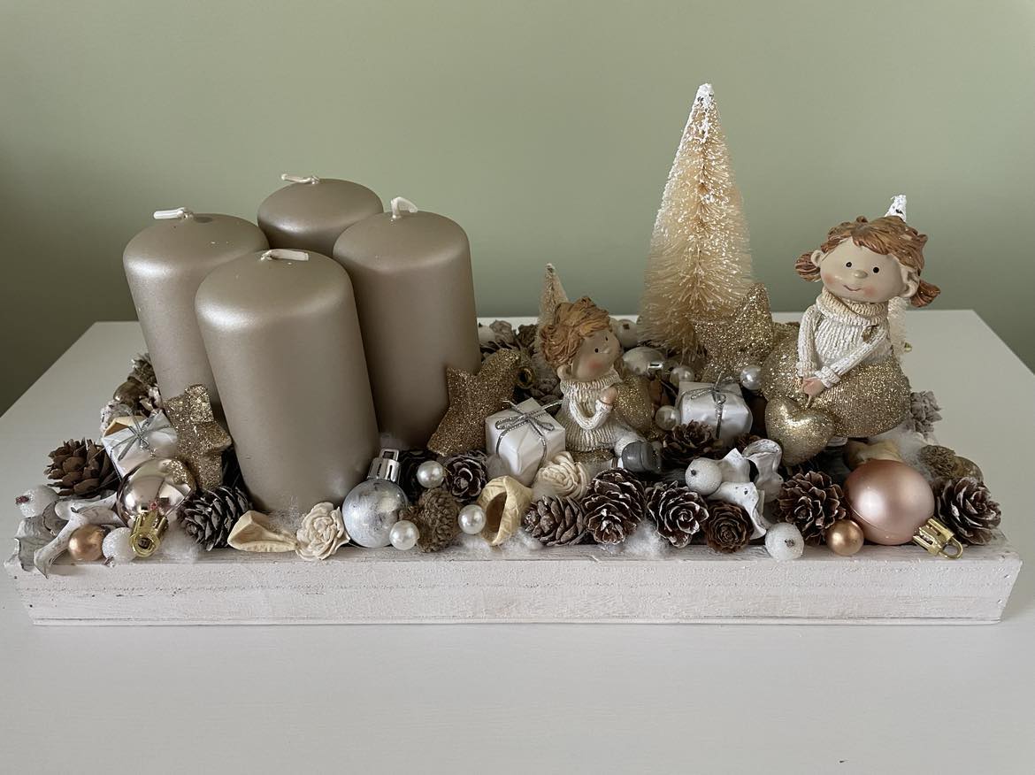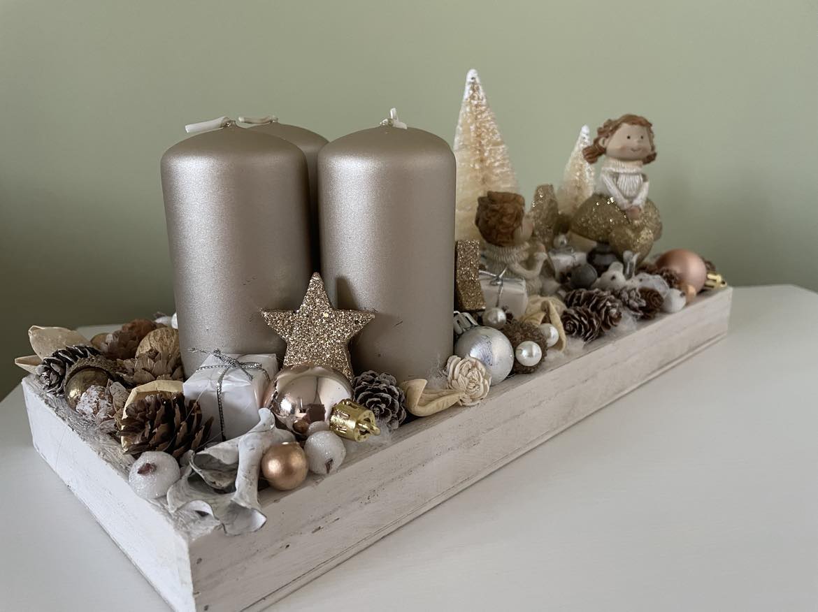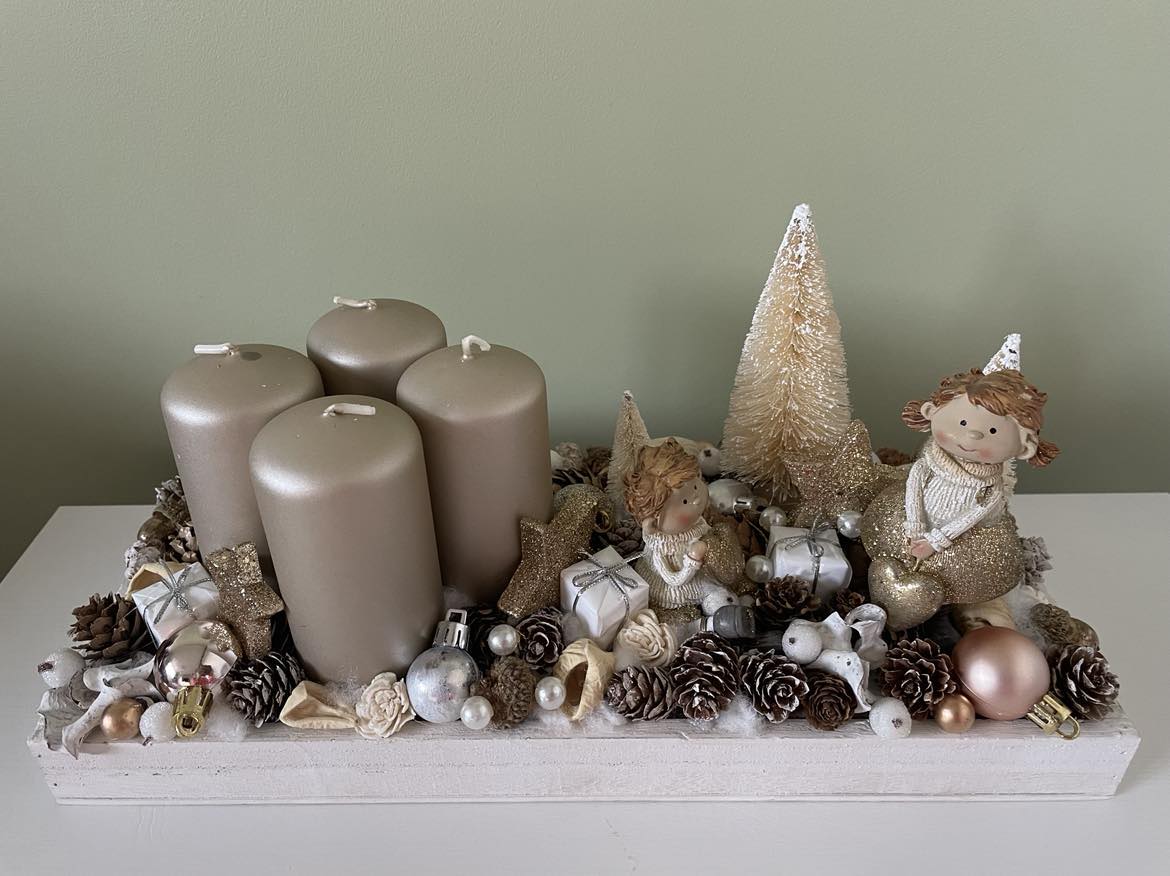 White-Golden Advent table decor, Festive decor, Christmas decor, Winter decor, Christmas table display, Christmas decorations