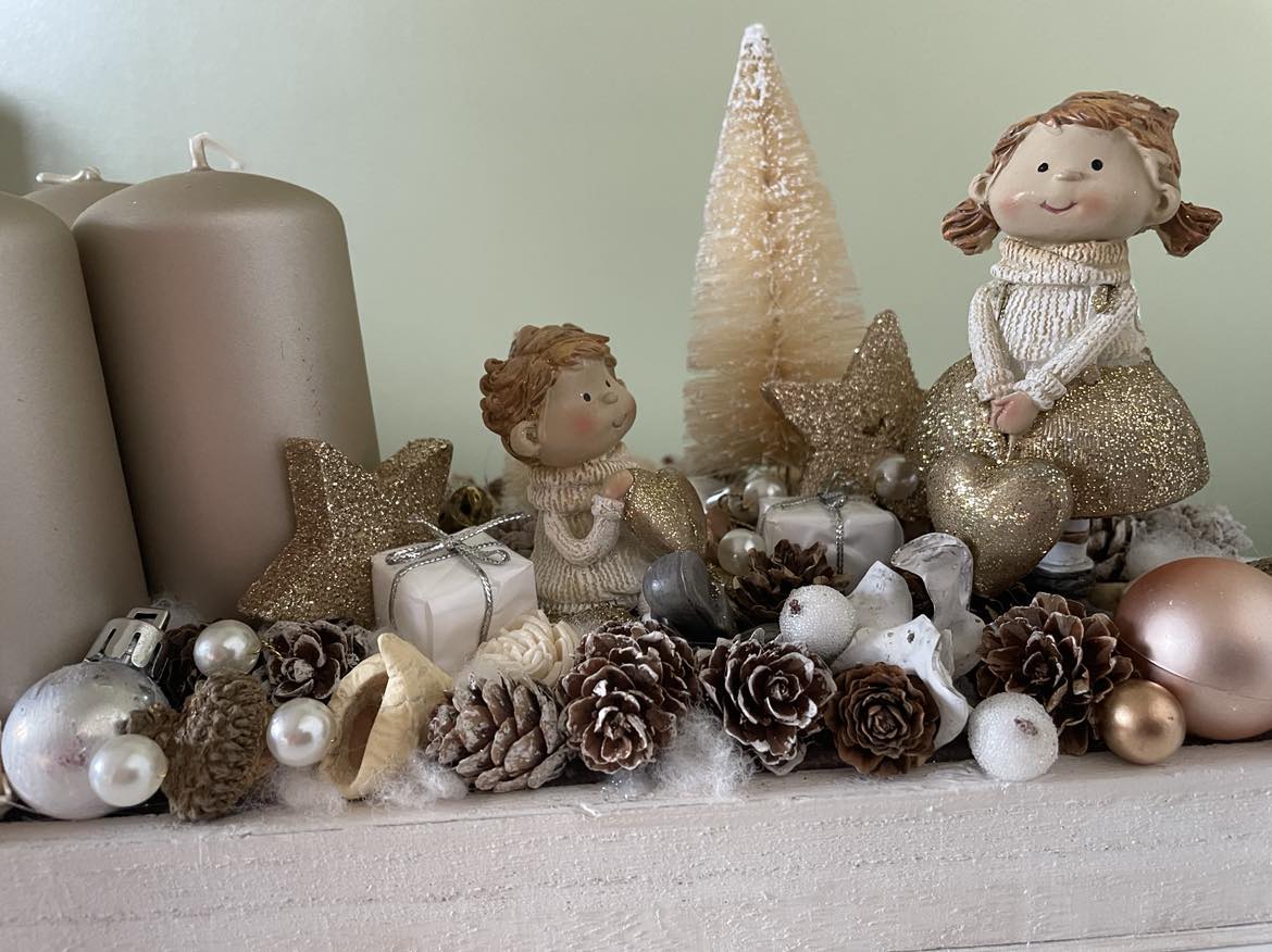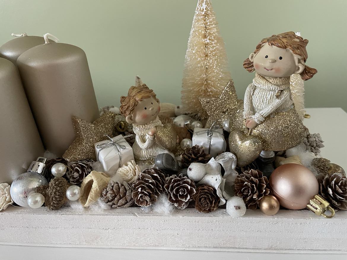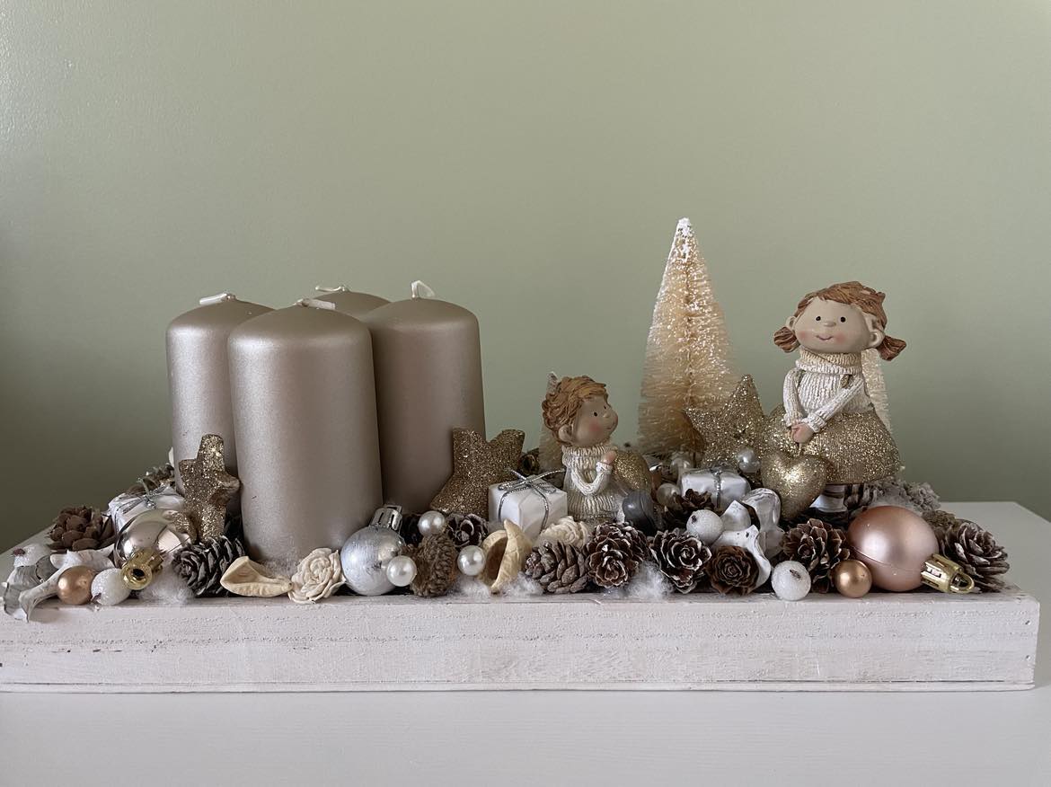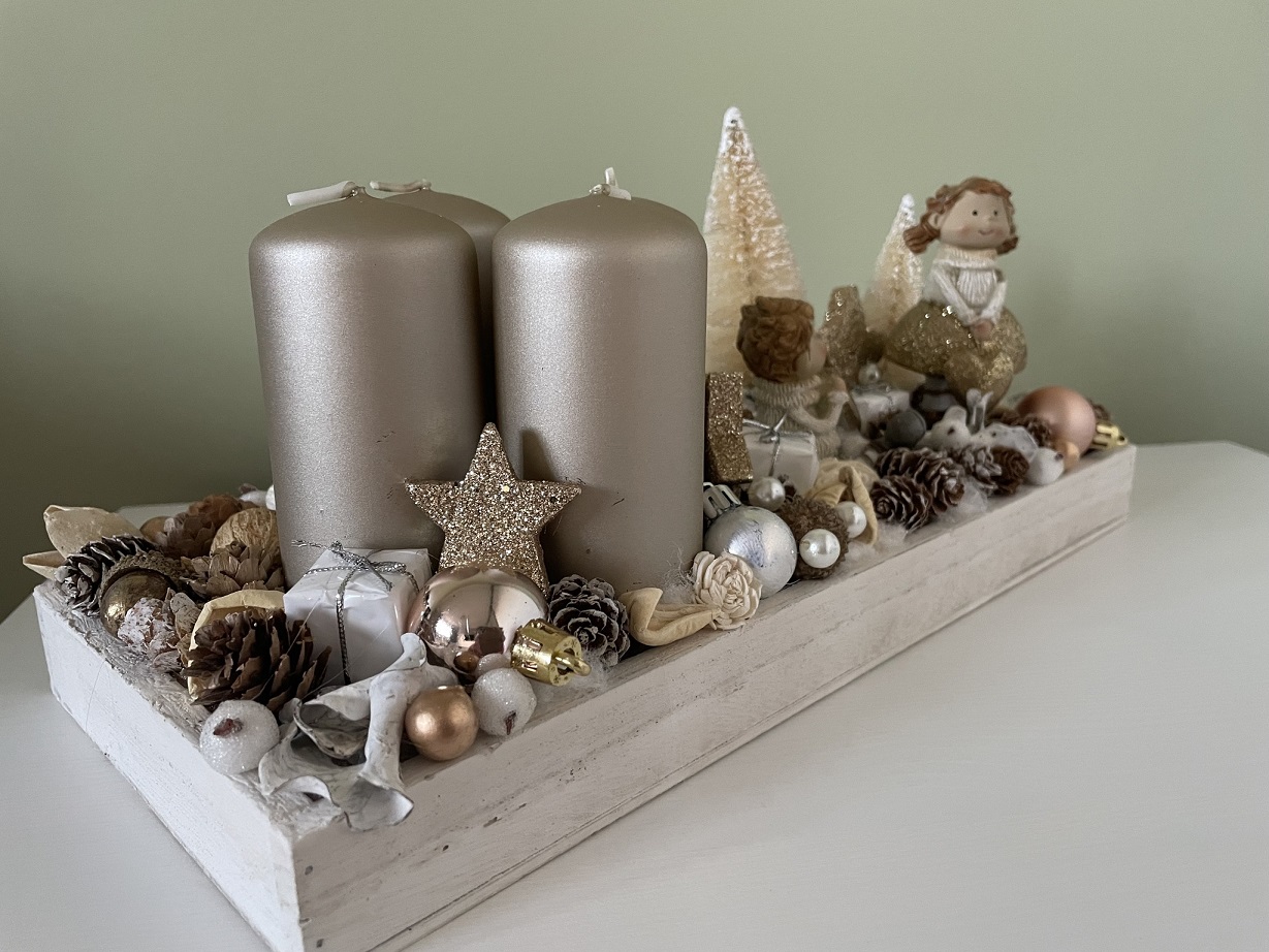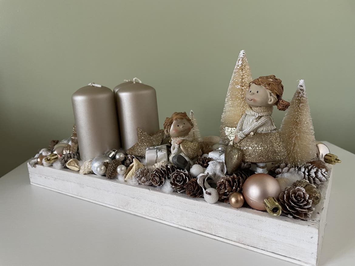 White-Golden Advent table decor, Festive decor, Christmas decor, Winter decor, Christmas table display, Christmas decorations